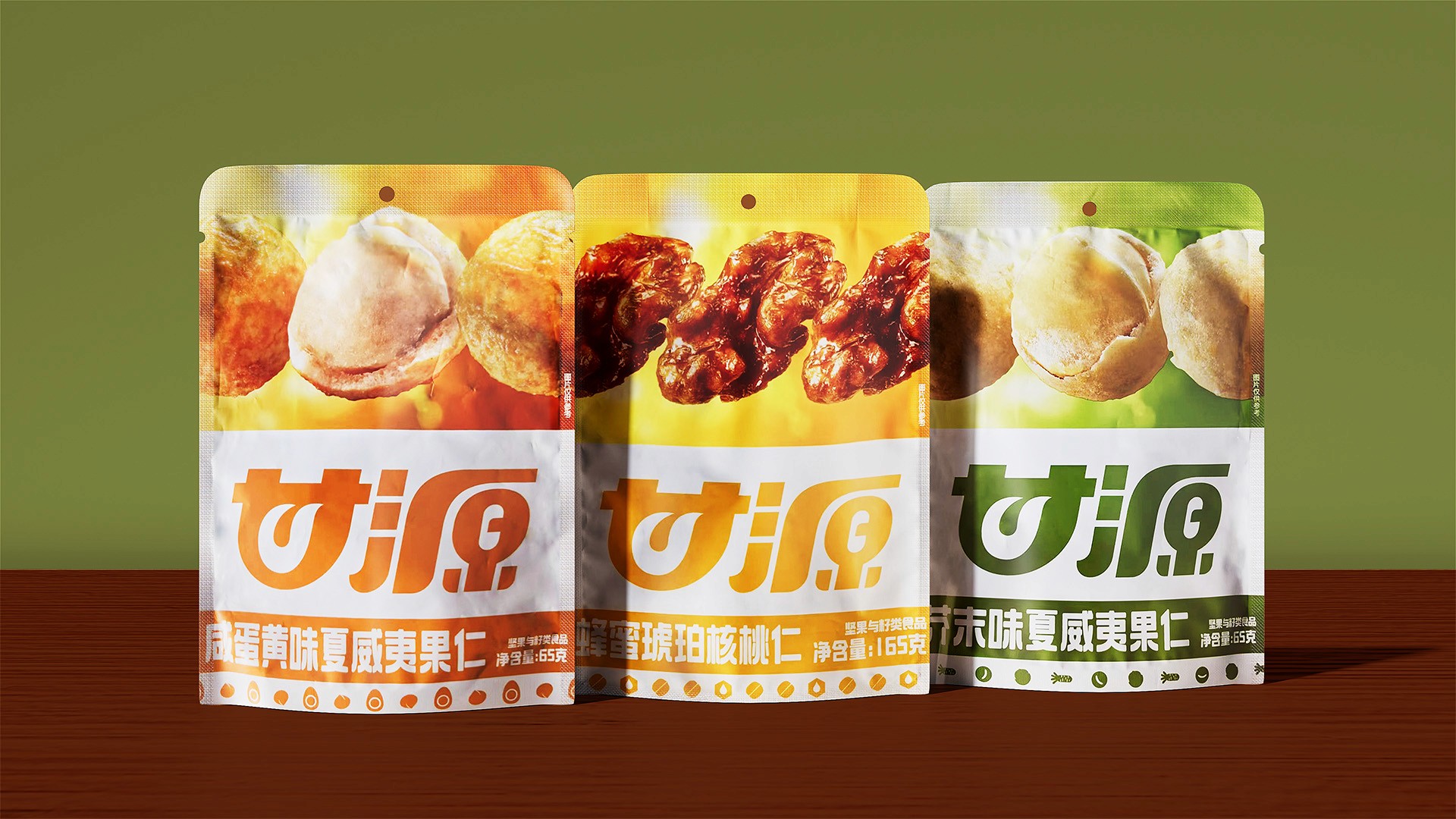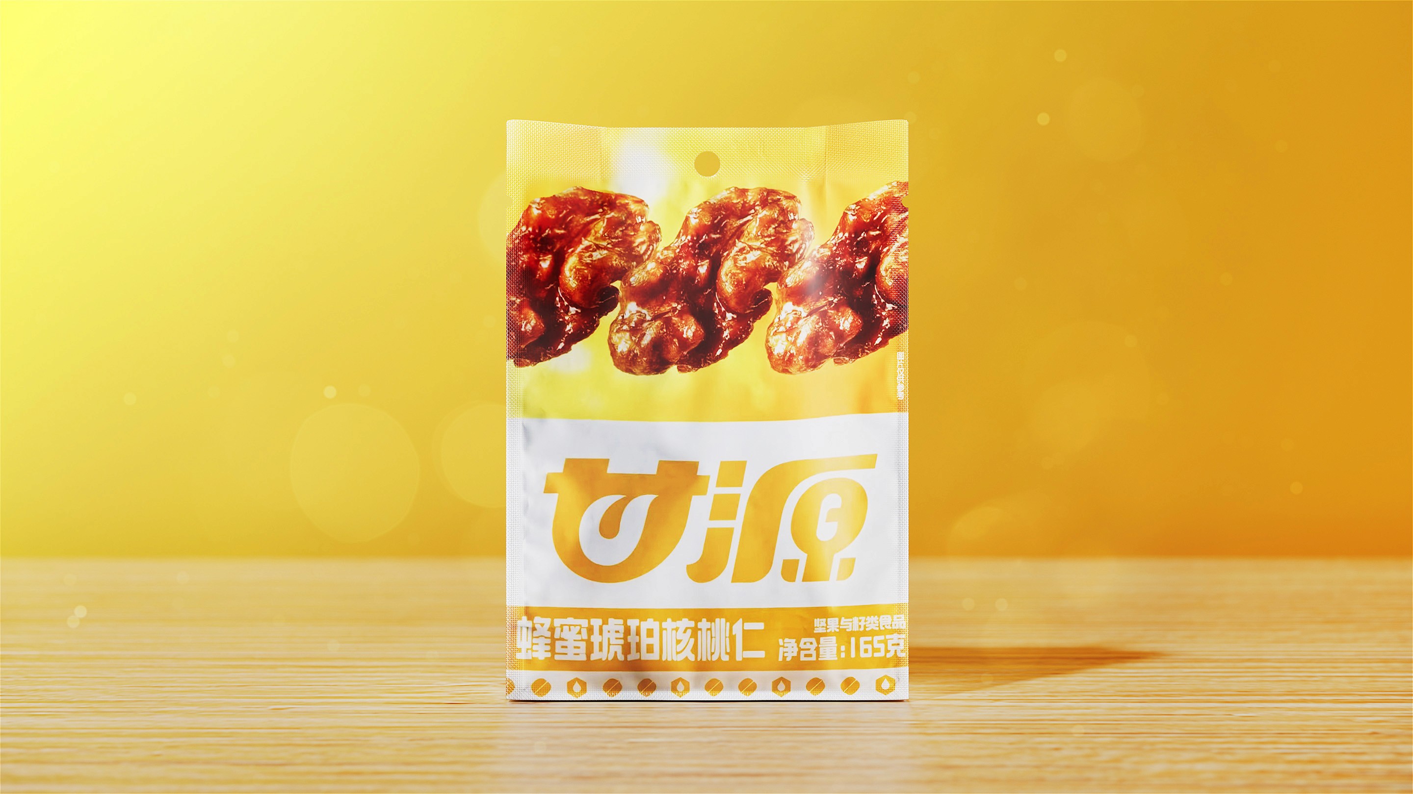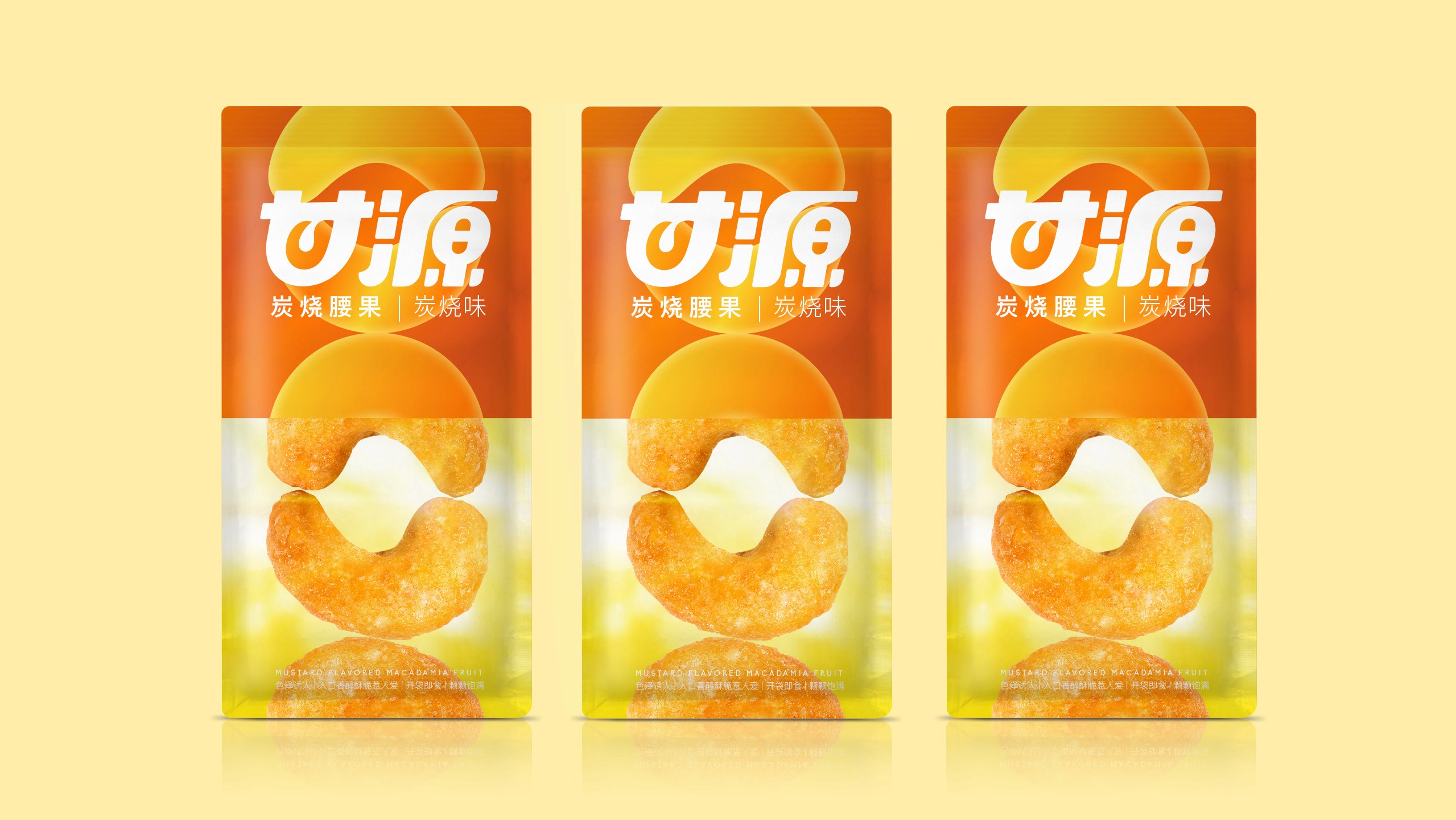 区别于甘源旧包装的食材单纯堆叠展示,我们希望将原料优良的自然生长环境分享给消费者, 阳光照耀自然, 赋予果实生命的活力,同时也温暖了消费者,增强食欲和愉悦感受。