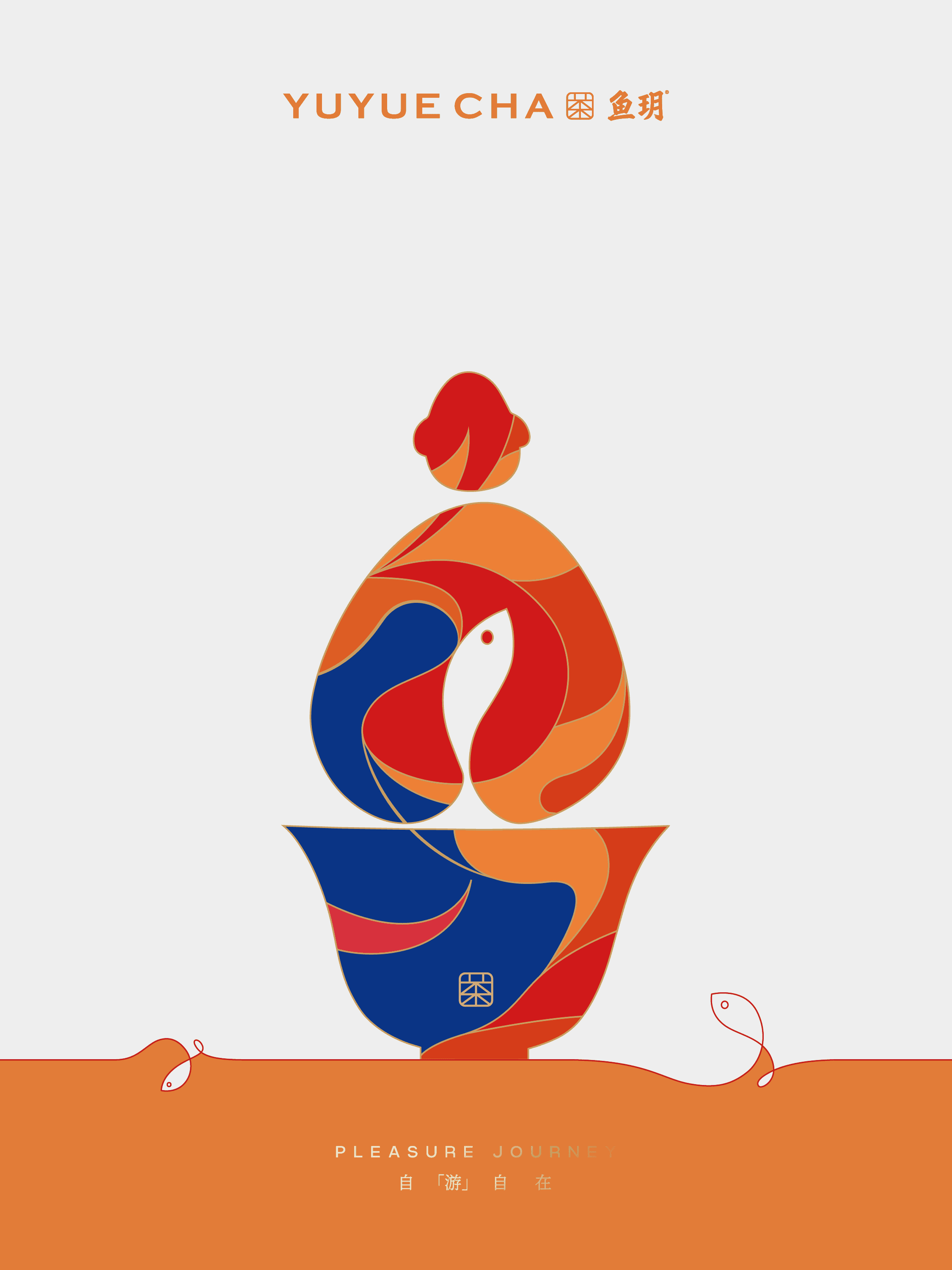 通过正负形的设计手法完成对“年年有鱼”传统意象的转译,也是对「鱼玥」品牌内核“动静皆从容”的哲学表达。
